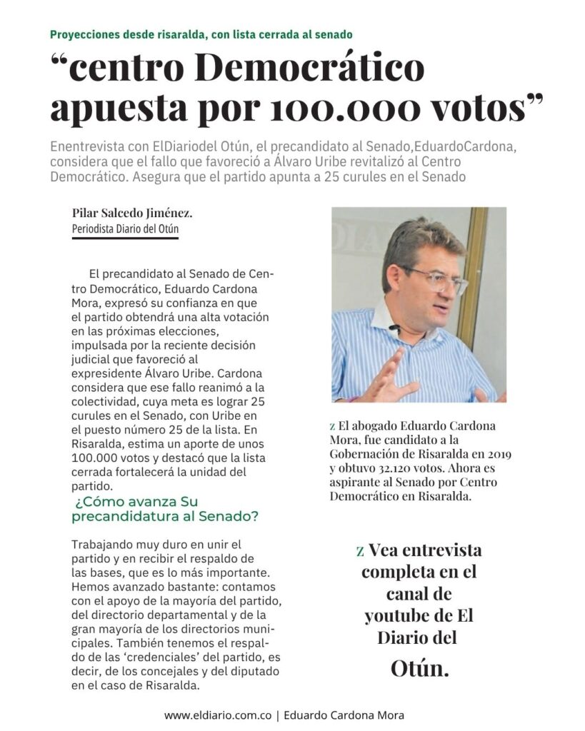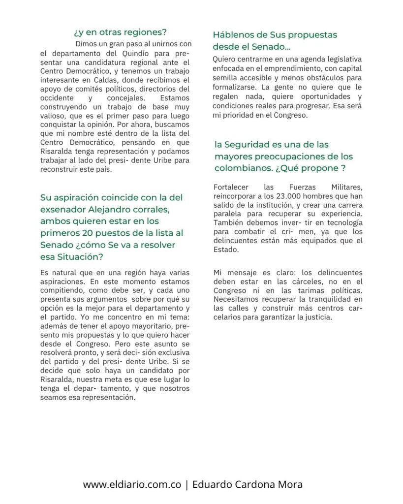 Quiero trabajar desde el Senado para devolverle la seguridad a los colombianos, apoyar a los emprendedores y a las empresas generadoras de empleo.